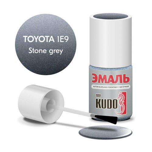 Эмаль автомобильная KUDO ремонтная с кисточкой, Подкраска сколов и царапин для авто, Эфиро-целлюлозная, TOYOTA 1E9- Stone grey металлик