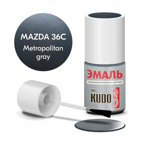 Эмаль автомобильная KUDO ремонтная с кисточкой, Подкраска сколов и царапин для авто, Эфиро-целлюлозная, MAZDA 36C Metropolitan gray металлик