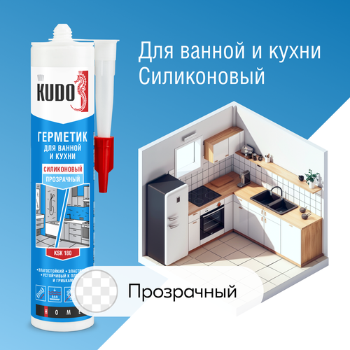 Герметик для ванной и кухни силиконовый KUDO "KSK 180", 280 мл, прозрачный