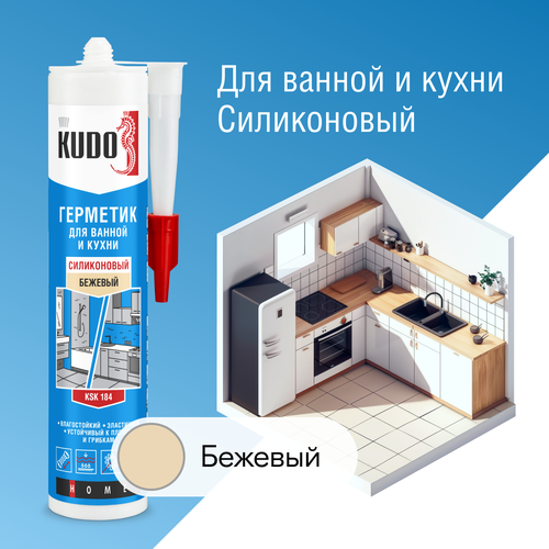 Герметик для ванной и кухни силиконовый KUDO "KSK 184", 280 мл, бежевый
