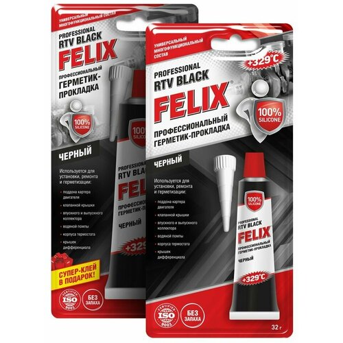 Герметик - прокладка чёрный 85 г (+ супер-клей 3 гр в подарок) "FELIX" (Малазия)