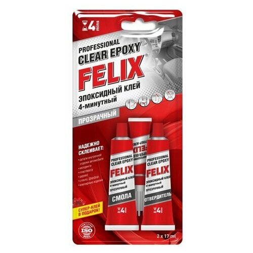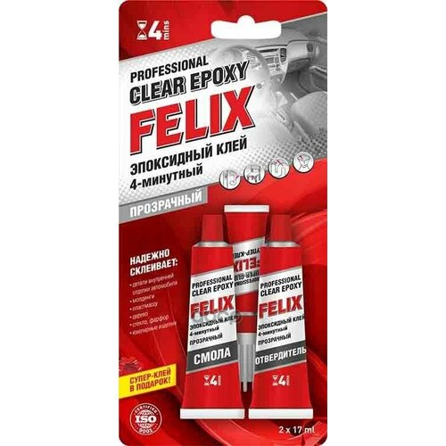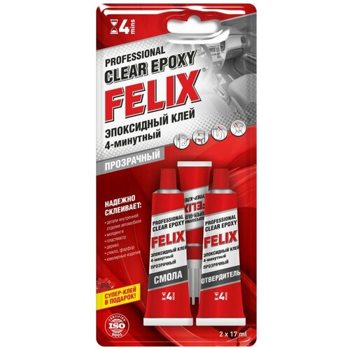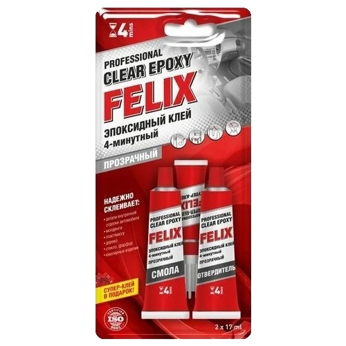 Клей эпоксидный профессиональный "FELIX" прозрачный (2 * 17мл)+ супер-клей 3 гр в подарок (Малазия)