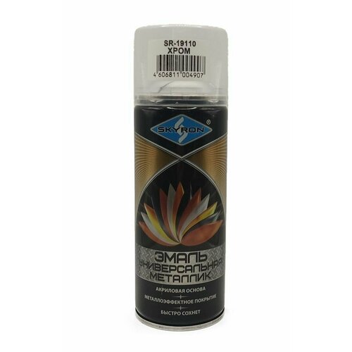 Эмаль универсальная акриловая SKYRON металлик цвет: Хром. Аэрозоль 520мл (SR-19110)
