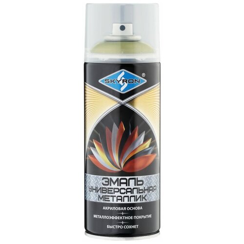 Универсальная эмаль SKYRON металлик лимонно-желтая SR-19240 предназначена для окраски предварительно загрунтованных металлических, деревянных и прочих поверхностей. Имитирует гальваническое покрытие. Применяется для наружных и внутренних работ.Аэрозольная форма выпуска позволяет легко наносить эмаль на труднодоступные места и изделия со сложной геометрией поверхности. Не стекает при равномерном нанесении. Обладает повышенной укрывистостью и превосходной адгезией к окрашиваемой поверхности. При высыхании образует прочное металлоэффектное покрытие.