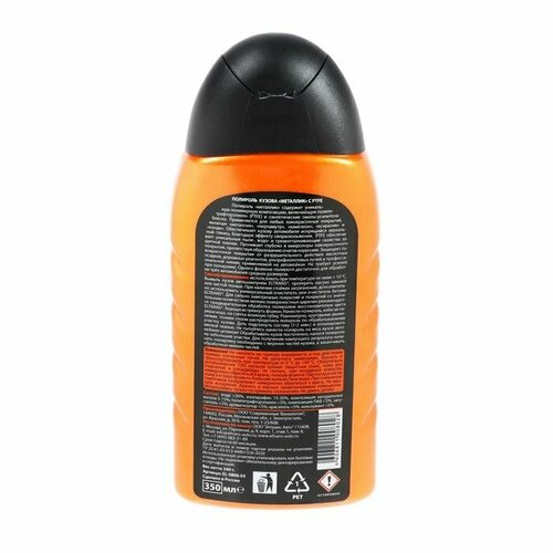 Полироль кузова Элтранс "металлик" с PTFE, 350 мл EL-0806.03 (комплект из 2 шт)Полироль Элтранс «металлик» содержит уникальную полимерную композицию, включающую политетрафторэтилен (PTFE) и синтетические смолы-усилители блеска. Применяется для любых лакокрасочных покрытий, включая «металлик», «перламутр», «хамелеон», «ксиралик» и «кэнди». Благодаря эффекту сверхскольжения, PTFE обеспечивает уникальные пыле-, водо- и грязеотталкивающие свойства защитной плёнки. Проникает глубоко в микропоры лакокрасочного покрытия, препятствуя образованию очагов коррозии. Защищает лакокрасочное покрытие от разрушительного действия кислотных осадков, дорожных реагентов, ультрафиолетовых лучей и профессиональной химии, применяемой на автомойках.-Вес: 388 г.-Фасовка: 1 шт-Тип индивидуальной упаковки: Без упаковки-Длина упаковки: 4-Высота упаковки: 18-Ширина упаковки: 7.5-Объем упаковки: 0.540-Объем продукта: 0.7093-Объем бокса: 4.256-Материал: См. на упаковке-Вес, г/Объём, мл: 350-Объём: 300 мл - 500 мл-Тип ёмкости: Бутылка-Температурное ограничение: Нет-Вид полироли: Синтетическая-Назначение: Для кузова