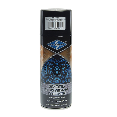 Грунт-эмаль по ржавчине черная RAL 9005 аэрозоль 520мл SKYRON