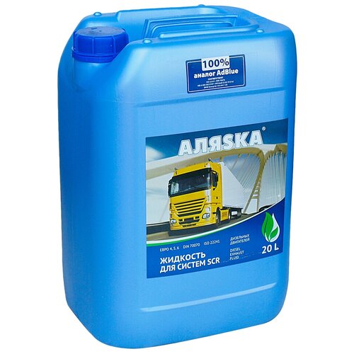 Жидкость для систем SCR дизельных двигателей АЛЯSКА мочевина, 20 л 5407 применяется в качестве добавочной рабочей жидкости в дизельных двигателях с использованием технологии селективной каталитической нейтрализации. Применение необходимо для достижения экологических нормативов Евро 4 и Евро 5 по выбросу вредных веществ.