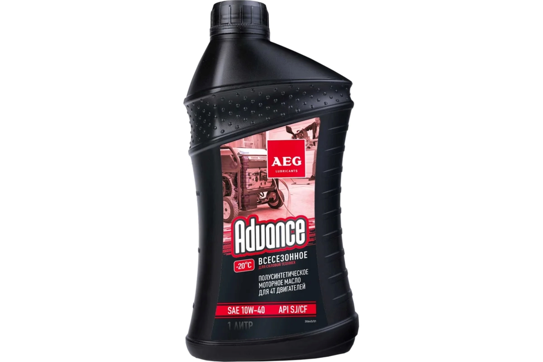 Масло моторное четырехтактное полусинтетическое Advance (0,6 л; SAE 10W40; API SJ/CF) AEG Lubricants 33291 используется в бензиновых и дизельных двигателях автомобилей, генераторов, различной садовой техники (мотоблоков, снегоуборщиков и прочей техники, где производителем рекомендовано использование масел для 4-х тактных двигателей).Высокая прочность масляной пленки гарантирует защиту цилиндропоршневой группы от задиров при перегреве двигателя во время тяжелой работы при высоких температурах;Отличная моющая способность масла защищает от выпадения осадка и лаковых образований в поддоне двигателя и на смачиваемых маслом поверхностях;Стабильный состав антифрикционных и противозадирных присадок дает возможность маслу длительное время сохранять свои свойства при регулярных циклах нагрева- охлаждения во время эксплуатации специальной техники;Полусинтетическая основа увеличивает межсервисный интервал по сравнению с минеральными маслами и обеспечивает экономию топлива по сравнению с минеральными маслами.Технические характеристики моторного четырехтактного полусинтетического масла AEG Lubricants 30645Назначение-для садовой техникиЗимнее-до -25 градусовТип-ЧетырехтактноеВид-полусинтетическоеМаркировка-10W-40Объем-0,6 л