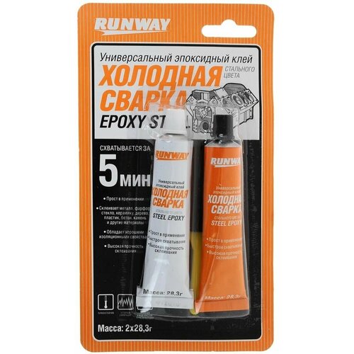 Эпоксидный Клей Runway Холодная Сварка Стального Цвета. 2*28,3гр RUNWAY арт. RW8504