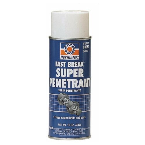 Супер проникающая смазка PERMATEX 80052 применяется для отвинчивания заржавевших резьбовых соединений. Эффективно удаляет следы от коррозии, нагар, смазку, грязь, углеродные отложения и смолы.