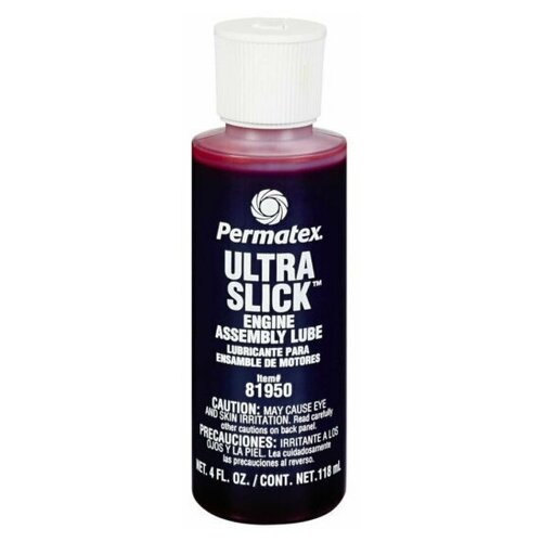 Permatex Ultra Slick Смазка для Двигателя ; это смазка, являющаяся зарекомендовавшим себя предварительным лубрикантом при сборке бензиновых и дизельных двигателей. Формирует защитное покрытие во время монтажа, а также во время критических моментов запуска двигателя и периодов притирания деталей. Permatex Ultra Slick Смазка для Двигателя содержит в своей основе очищенные масла, эффективность которых усилена добавлением уникальной смеси добавок, рассчитанных на высокое давление (EP additives). Эти добавки усиливают и сохраняют притирочные свойства продукта. Не рекомендуется использовать данный продукт в системах с чистым кислородом и/или системах, обогащенных кислородом, а также применять в качестве герметика для материалов, содержащих хлор или другие сильные окислители.