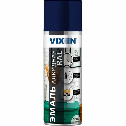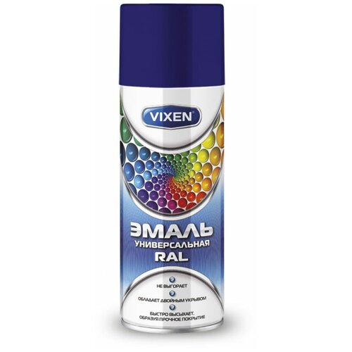 Универсальная эмаль VIXEN VX-15002 темно-синяя RAL 5002, аэрозоль, 520 мл 47791 предназначена для защитно-декоративного окрашивания предварительно загрунтованных поверхностей (металл, дерево) внутри и снаружи помещений. Быстросохнущий состав обладает высокой укрывистостью и хорошей адгезией к основанию. Продукт образует прочное покрытие, устойчивое к неблагоприятным атмосферным воздействиям (осадки, ультрафиолет).