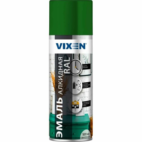 Краска-Спрей Vixen Vx-16002 Эмаль Универс. Темно-Зелен 520Мл Ral6002 (12Шт/Уп)