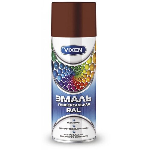 Универсальная эмаль VIXEN VX-18012 коричневая RAL 8012, аэрозоль, 520 мл 47803 подходит для окрашивания различных поверхностей после предварительного грунтования. Продукт отличается повышенной укрывистостью и устойчивостью к воздействию атмосферных явлений.Благодаря аэрозольной форме выпуска состав удобен при обработке труднодоступных участков. Особые светостойкие пигменты в составе исключают выгорание краски под влиянием УФ-излучения.