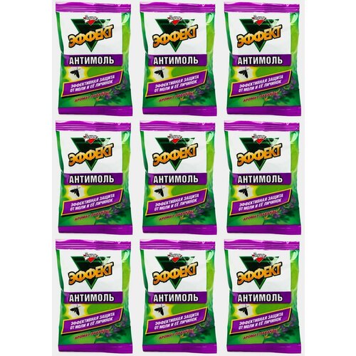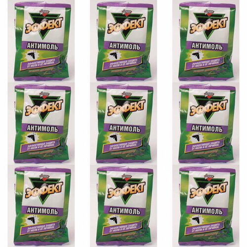 Эффект-Антимоль надежно защищает Вашу одежду, изделия из меха и шерсти от моли и ее личинок, придавая вещам приятный аромат. Способ применения: Поместите контейнер в шкаф или в пакет с вещами. Используйте не более двух контейнеров на 15 метров квадратных. Средство эффективно в течение 4 месяцев после вскрытия герметичной упаковки. В комплекте 9 уп