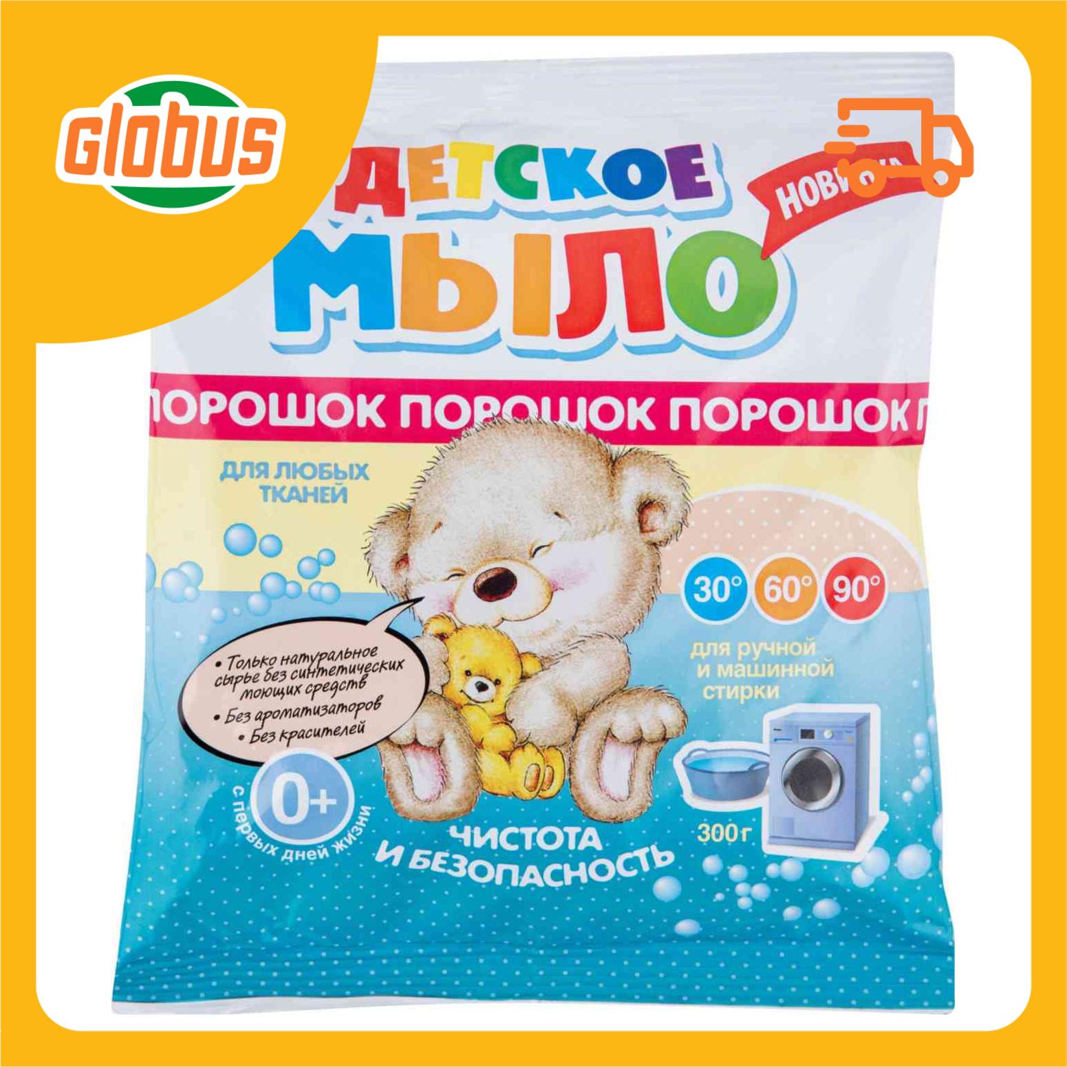 Детское мыло порошок - это натуральное детское мыло без каких-либо других добавок, красителей, ароматизаторов. Мыло порошок предназначено для бережной стирки детского белья с первых дней жизни малыша. Не вызывает аллергии, безопасно для кожи ребенка. Эффективно справляется со специфическими загрязнениями детского белья. Подходит для ручной и машинной стирки. Предназначено для всех видов тканей, цветного и белого белья.Не вызывает аллергииБезопасен для кожи ребенкаЭффективно справляется со специфическими загрязнениями детского бельяПодходит для ручной и машинной стиркиПодходит для всех типов стиральных машинПредназначен для всех видов ткани цветного и белого бельяСпособ применения:Машинная стирка: Используйте как основное средство для стирки. Расход мыла порошка на один цикл загрузки: при слабой/средней степени загрязнения – 10-30г при температурах стирки 40-60ºС, при сильной степени загрязнения - 40-70г при температурах стирки 70-90ºС. При выборе режима стирки и температуры дополнительно следуйте рекомендациям, указанным на ярлыках Ваших изделий. Ручная стирка: Используйте как основное средство для стирки при температуре 30-40ºС. Расход мыла порошка на 10л воды: при слабой/средней степени загрязнения – 10-30г, при сильной степени загрязнения – 40-50г. Погрузите изделие в раствор, оставьте на некоторое время или сразу постирайте. Затем промойте водой.Меры предосторожности: При попадании на слизистую оболочку глаз - промыть большим количеством воды. Хранить в недоступном для детей месте вдали от пищевых продуктов при температуре до +30оС, предохранять от влаги. После использования или истечении срока годности упаковку утилизировать как бытовой отход.