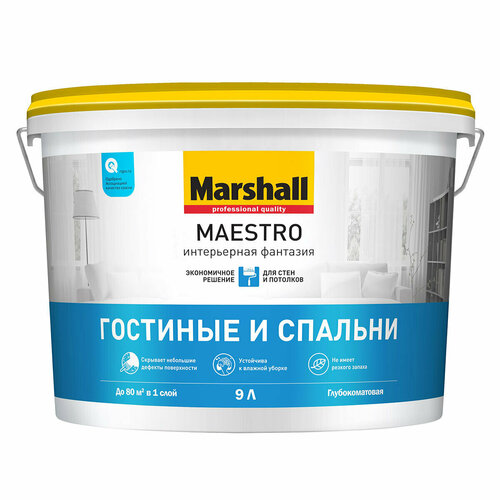 Краска Maestro Интерьерная фантазия Marshall 9 л База A (белый) глубокоматовая