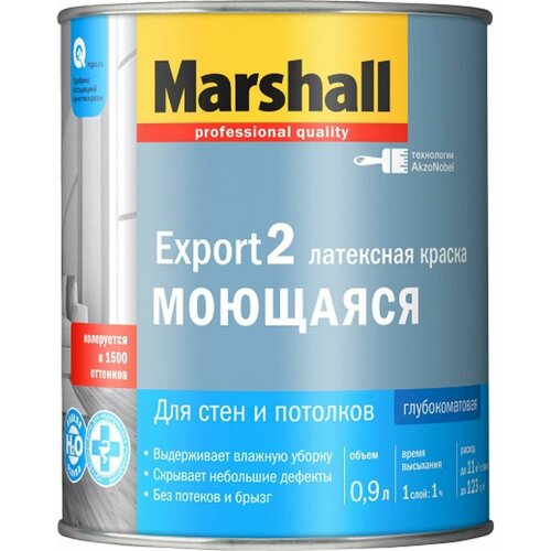 ![]() | 710 ₽ | 24.12.2024 Краска MARSHALL EXPORT 2 глубокоматовая для внутренних работ, Баз BW 0,9л 5248796 | |