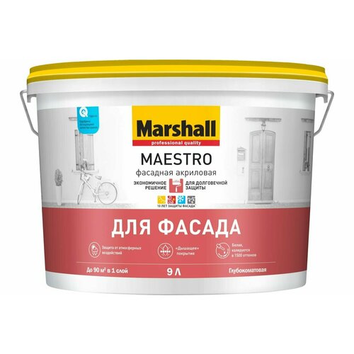 Краска Maestro Фасадная акриловая Marshall 9 л База С (бесцветный) глубокоматовая