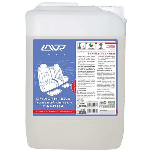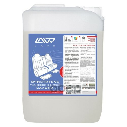 Очиститель Тканевой Обивки Салона Против Сложных Загрязнений (Концентрат 1:5-10) Lavr Textile Cleaner 5л Lavr арт. LN1463