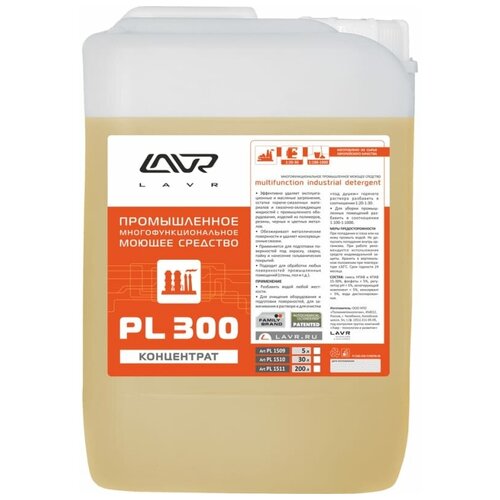Производитель: LAVR Артикул (номер детали): PL1509 Моющее средство 5л (многофункциональное промышленное) PL300Свечи, диски, пружины, лампочки - цена за штуку, не за комплект. Шланги, трубки и т. п. цена за метрЗамены: