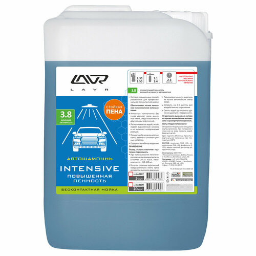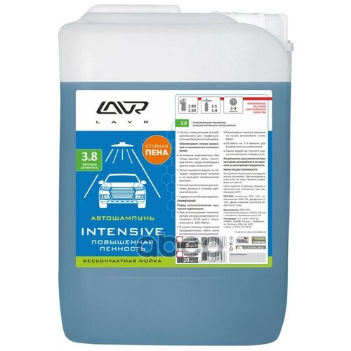 Автошампунь Для Бесконтактной Мойки "Intensive" Повышенная Пенность 3,8 (1:301:50), 5 Л Lavr Ln2307 Lavr Арт. Ln2307 LAVR арт.