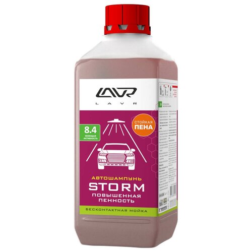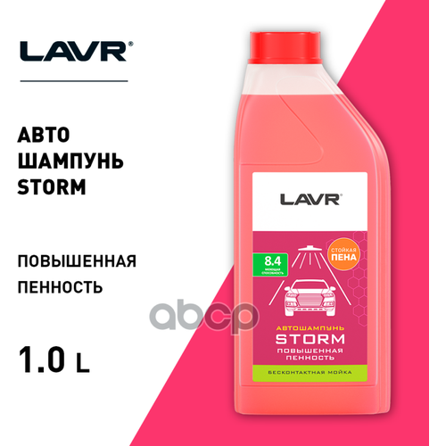 Автошампунь для бесконтактной мойки "STORM" повышенная пенность 8.4 1:80-110 LAVR Auto Shampoo (1л)