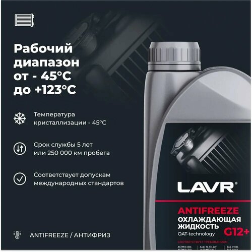 Антифриз Lavr красный G12+ (-45) 1 кг LAVR LN1709 | цена за 1 шт | минимальный заказ 1