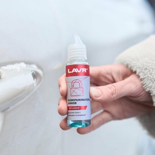 Размораживатель замков c силиконовой смазкой LAVR – профессиональное средство оперативно возвращает функциональность замку и защищает его от повторного замерзания. Прост в применении благодаря носику-капельнице, который впрыскивает состав вглубь механизма. Флакон небольшого объема удобно брать с собой и хранить.