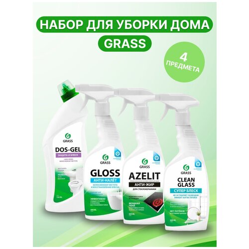 ![]() | 1054 ₽ | 06.04.2024 Набор 4шт GRASS для уборки дома: для кухни Азелит антижир Azelit стеклокерамика, для ванны Gloss, чистящее средство для стекол и зеркал Clean glass, для туалета и ванной Dos Gel | |