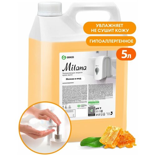 Мыло-Крем Жидкое Grass Milana Увлажняющее, Молоко И Мед 5 Кг, 126105