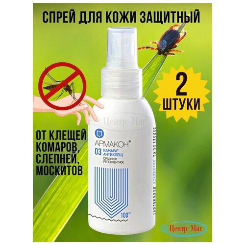 Спрей для кожи защитный, 100 мл, 2 штуки армакон "камара антиклещ", от клещей, комаров, москитов, слепней
