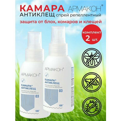 Спрей для кожи защитный, 100 мл, армакон "камара антиклещ", от клещей, комаров, москитов, слепней, 2 шт.