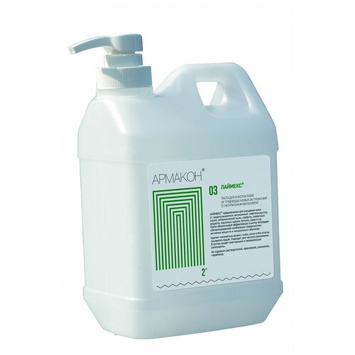 Паста:ЛАЙМЕКС®-паста для очистки кожи от трудноудаляемых загрязнений (с натуральным абразивом) армакон ®-предназначена для очищения кожи от нефтепродуктов, масел, металлической пыли, графита, смазочных веществ, масляных красок, битума, сажи и т.п.-обеспечивает бережное и эффективное очищение кожи благодаря сбалансированной комбинации ПАВ и натурального абразива-в качестве абразива используется скраб из измельченных абрикосовых косточек, изготовленный с использованием современной вакуумной технологии, исключающей образование острых частиц-удаляет неприятные запахи с кожи, легко и без остатка смывается водой.-подходит для частого применения-не содержит растворителей, красителей, силиконов и парабеновУпаковка: туба 200 мл, канистра с дозирующей насадкой 2 л