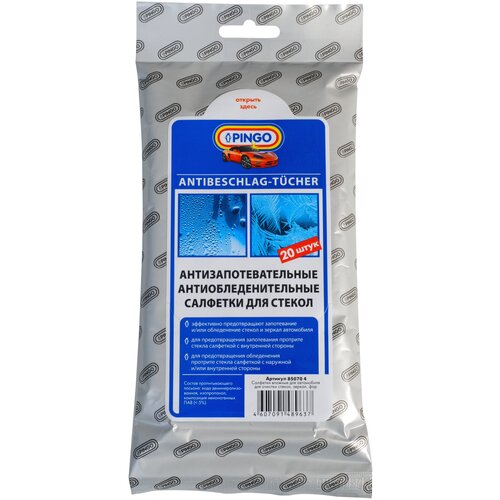 Салфетки антизапотевательные и антиобледенительные для стекол Pingo, 20 шт,85070-4