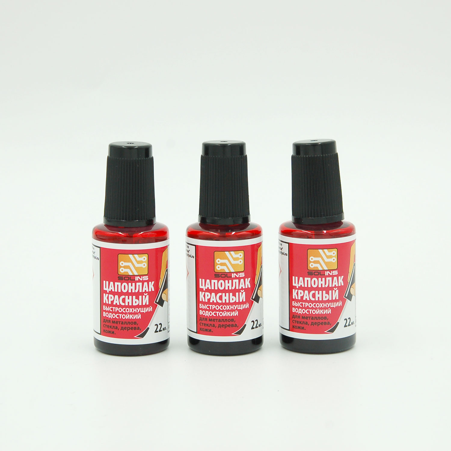 Цапон лак SOLINS 22 мл Красный, 3шт