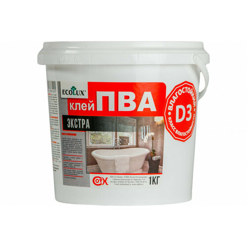 Клей экстра влагостойкий ПВА ECOLUX D3 1 кг 4607133681425