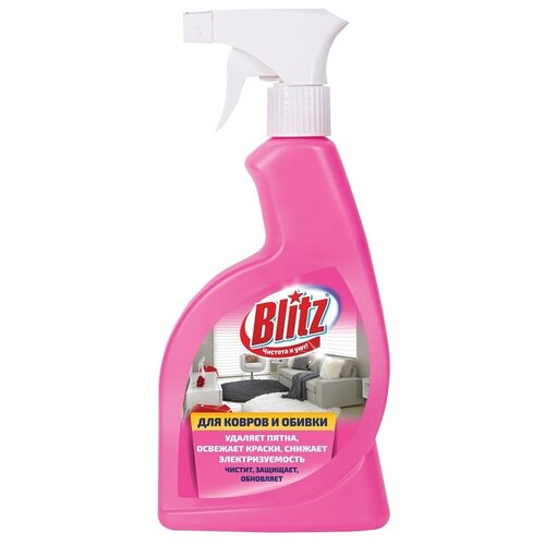 Универсальное чистящее средство для чистки ковров и обивки спрей BLITZ (блиц) предназначен для пенной чистки и антистатической обработки ковров, ковровых покрытий (ковров, ковролина), обивки мягкой мебели, салонов автомобилей. Очиститель ковров, паласов и автомобильных сидений удаляет даже самые стойкие загрязнения, благодаря особой мощной формуле спрея. Средство для уборки действует деликатно, освежая яркость красок, не оставляя следов обработки. Действует как антистатик - после его применения устраняется статическое электричество с поверхности мебели и ковров. Средство для чистки ковров и мягкой мебели подходит для чистки ткани велюра из искусственной кожи, пластика и стекол. Жидкость для очистки в концентрированном виде применяется как пятновыводитель удаляет пятна от вина сока крови жира и других загрязнений, устраняет неприятный запах. Чистящее средство для машины поможет в мытье сидений и ковриков. Спрей для уборки разработан с учетом безопасности для поверхностей, на которых он используется. Способ применения: нанести пену средства н очищаемую поверхность и тщательно почистить щеткой. Остатки средства удалить щеткой, смоченной в воде или обработать поверхность моющим пылесосом. Перед применением проверить стойкость окраски текстильного изделия к действию средства в незаметном месте.