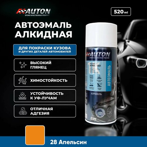 Краска для автомобиля / Автоэмаль алкидная AUTON, 28 Апельсин, баллон аэрозоль, 520 мл