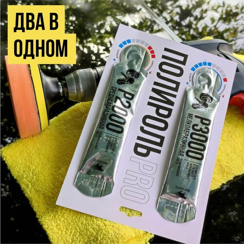 Полироль PRO набор. Два в одном.Полироль P2000 среднеабразивная полировальная паста Предназначена для обработки лакокрасочных покрытий автомобиля, для удаления царапин, а также повреждений, вызванных воздействием различных химических реагентов. При отсутствии серьёзных повреждений может использоваться как однопроходнаяПолироль P3000 мелкоабразивная полировальная паста Разработана для обработки лакокрасочных покрытий автомобиля после использования грубых полировальных составов. Удаляет голограммы, придаёт финальный блеск.