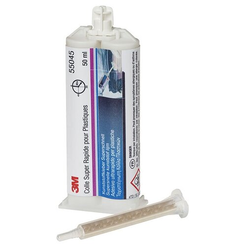 Подходит для всех типов пластикаОбеспечивает быстрый ремонт поврежденных пластиковых деталейПозволяет восстановить недостающие пластиковые частиВысокая скорость отвержденияКлей для быстрого восстановления пластика 3М Automix 55045 представляет собой быстросохнущий двухкомпонентный клей, разработанный для быстрого, простого и прочного ремонта поврежденных пластиковых деталей автомобиля. Материал высыхает через считанные минуты и может быть зашлифован, просверлен, обрезан для придания формы поврежденного элемента, даже если сам элемент был утерян.