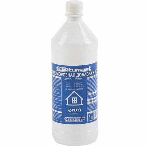 Противоморозная добавка в бетон Bitumast 1 л 4607952900981 обеспечивает отверждение бетона в зимних условиях при отрицательных температурах до -15°С. Применяется для любых видов бетона, обеспечивает быстрый набор прочности, уменьшает количество затворной воды на 10-15% и не образует высолов. Добавляется в бетон при отрицательных температурах: От 0°С до - 5°С – 1% от массы цемента (1 литр на 100 кг цемента) От 0°С до -10°С – 2% от массы цемента (2 литра на 100 кг цемента) От 0°С до -15°С – 4% от массы цемента (4 литра на 100 кг цемента)