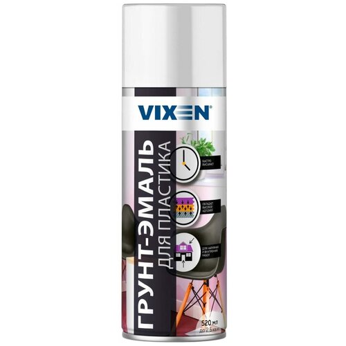 Vixen Грунт-эмаль для пластика, белый матовый RAL 9003, аэрозоль 12х520 мл. VX50103