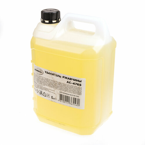 Преобразователь ржавчины ASTROhim 5л-Средство эффективно удаляет ржавчину с любых поверхностей: металлических, керамических, эмалированных, каменных, а также с ткани.Помогает быстро очистить поверхность от коррозии химическим путем, не прибегая к механическому воздействию.Способ применения:Обработку проводить при температуре окружающей среды и обрабатываемой поверхности не ниже +5°С.Перед нанесением удалителя ржавчины очистить поверхность от грязи, смазки, пыли. Нанести состав на ржавую поверхность при помощи кисточки на 10-15 минут. При обработке металла оставить на поверхности до 30 минут. Тщательно промыть большим количеством воды и высушить. При необходимости повторить обработку. Внимание!Состав содержит кислоту! Использовать в хорошо проветриваемом помещении. При работе использовать индивидуальные средства защиты органов зрения (очки), дыхания (респиратор) и кожи (перчатки). В случае попадания препарата на кожу и в глаза промыть большим количеством воды, при необходимости обратиться к врачу. Не глотать! Не вдыхать испарения! Беречь от детей! Характеристики:Тип: преобразователь ржавчиныОбъем, л: 5,0Тара: пластиковая канистраСостав: смесь неорганических кислот более 30%, вода 15-30%, загуститель 5-15%, функциональные добавки менее 5%.