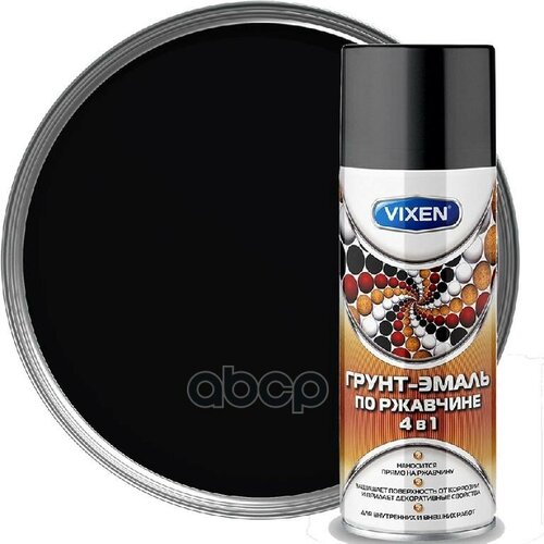 Грунтэмаль По Ржавчине 4 В 1, Черный Янтарь (Ral 9005), Аэрозоль 520 Мл Vixen Vx519005 Vixen арт. VX519005