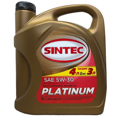 Автомобильное моторное масло SINTEC PLATINUM 5W-30 API SN/CF ACEA A3/B4 4 л предназначено для смазки 4 тактных двигателей и их максимальной защиты при различных условиях эксплуатации. Синтетическое масло 5w30 предназначено для автомобилей с бензиновыми и дизельными двигателями с высокими эксплуатационными характеристиками, обеспечивает легкий и быстрый запуск при низких температурах. Автотовары также подходят для двигателей с турбонаддувом и системами нейтрализации отработавших газов. Моторные масла подходят для любых сезонов, применимы как для новых двигателей, так и для двигателей с большим пробегом. Автомобильные масла обеспечивают увеличенный интервал замены и помогут защитить двигатель от износа. Объем масла для мотора - 4 литра. Товары для автомобиля станут полезным подарком мужчине - наше качественное масло для машины предотвращает образование отложений в масляной системе, имеет повышенную стойкость к топливу переменного качества, поэтому высоко ценится среди автолюбителей.Комплектация - Масло 4 литра.Класс вязкости - 5w-30 5в-30; - 5 30; 5W 30; - 5w30 5в30.Марка автомобиля - иномарки и отечественные автомобили; - Легковые и малый коммерческий транспорт; - ВАЗ ГАЗ УАЗ.Модель - Все виды авто; - Любая модель автомобиля; - универсальное.Назначение моторного масла - бензиновые и дизельные; - API SN API CF; - ACEA A3/B4; - MB-Approval 229.3 VW 502.00/505.00 Renault RN0710/0700 Porsche A40 Opel A/B JASO MA2Тип моторного масла – Синтетика; - Синтетическое всесезонное; - Четырехтактное.КомплектацияМасло 4 литра