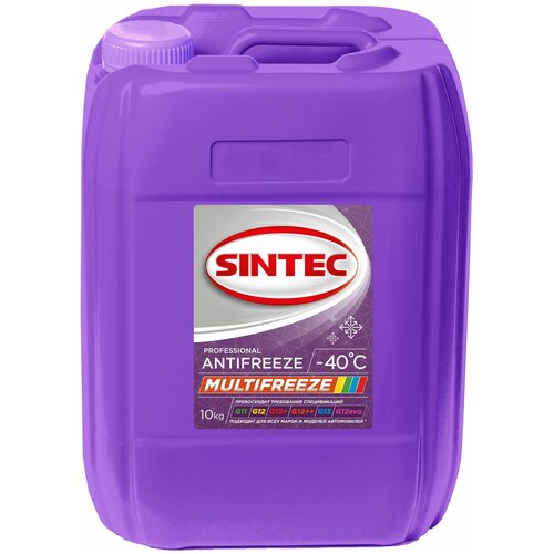 Универсальный антифриз SINTEC MULTIFREEZE изготовлен по уникальной лобридной технологии, которая сочетает преимущества карбоксилатных и силикатных антифризов. Антифриз производится на основе моноэтиленгликоля и пакета многопрофильных присадок с органическими и неорганическими добавками.Наименование показателя Типичные значенияПлотность при 20°С, г/см3 1,074Температура начала кристаллизации, °C -40Щелочность, см3 4,6Водородный показатель (рН) 8,4Цвет фиолетово-сиреневыйТемпература кипения, °C 110одобрения И соответствияASTM D3306 / D4985SAE J1034JIS K 2234:2006BS 6580:2010SANS 1251:2005China GB 29743-2013VW / Audi / Seat / Skoda / Lamborghini / Bentley / Bugatti TL 774 C/D/F/G/J (G11/G12/G12+/G12++/G13)MAN324 Typ Si-OATMercedes-Benz325.5Cummins CES 14603Deutz DQC CC-14