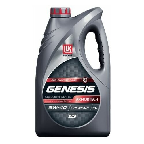 LUKOIL GENESIS ARMORTECH CN 5W-40 – синтетическое моторное масло для современных бензиновых и дизельных двигателей легковых автомобилей китайских брендов. Производится с применением передовой технологии DuraMax® и обеспечивает эффективную работу мощных модернизированных двигателей китайских автомобилей, оснащенных турбонаддувом, благодаря повышенной защите от изноcа и отложений. Технология продукта также адаптирована для двигателей с непосредственным впрыском и предотвращает возникновение эффекта преждевременного воспламенения топливовоздушной смеси (LSPI).LUKOIL GENESIS ARMORTECH CN 5W-40 рекомендовано к всесезонному применению в бензиновых и дизельных двигателях (не оборудованных фильтром сажевых частиц) китайских автомобилей: Chery, Haval, GREAT WALL и др. как в гарантийный, так и послегарантийный период эксплуатации. Также подходит для применения в двигателях других автопроизводителей, требующих масел уровня API SP, SN PLUS, SN и класса вязкости SAE 5W-40.