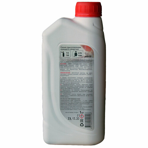 Автошампунь для бесконтактной мойки ACTIVE FOAM STANDART надежно удаляет дорожную пыль, грязь, масло, следы от насекомых. Создает стойкую активную пену, которая легко смывается с поверхностей. Средство щелочное и высокопенное, предназначено для бережной очистки металлических и лакокрасочных поверхностей. Эффективно удаляет масляные пятна, подтеки технических жидкостей и налипшую грязь. Средство предназначено для удаления консервационных смазок, СОЖ, эксплуатационных загрязнений нефтяного, жирового, масляного, почвенного происхождения, пыли, копоти с металлических и других щелочестойких поверхностей, с использованием специальных моечных машин и аппаратов. Безопасно для лакокрасочных покрытий, резины и пластика. Представляет собой водный раствор смеси поверхностно-активных веществ, комплексообразовителей, регулятора рН, ароматических и функциональных добавок. Эффективно работает в воде средней жесткости (не более 10 мг-экв./л.). Автошампунь не оказывает отрицательного воздействия на обрабатываемые поверхности, в т. ч. на нержавеющую сталь, алюминий, резину, пластические материалы (ПВХ, полипропилен, полистирол и т. п.). Рекомендуемая дозировка: Пеногенератор: 1:70-1:80Пенокомплект: 1:4 - 1:6Подходит для мытья легковых автомобилей, внедорожников и легких коммерческих автомобилей средней степени загрязненности. рН концентрированного средства = 12. При обращении с концентрированным средством рекомендуется пользоваться резиновыми перчатками. Способ применения: Расчетный расход на одну легковую машину должен составлять 75-120 г концентрата. 1. Перед нанесением средство необходимо разбавить с водой из расчета 1:70-1:80 (12,5-14 г/л) для пеногенератора (25, 50, 100 л) или 1:4 - 1:6 (167-250 г) в пенокомплект (1 л), в зависимости от степени загрязнения. 2. Предварительно смыть верхний слой загрязнения водой под давлением, после чего нанести подготовленный состав от нижней части автомобиля, к верхней. 3. Выдержать 1-2 минуты. Примечание: не рекомендуется допускать высыхания состава на поверхности. 4. Тщательно смыть водой под высоким давлением с близкого расстояния (15-20 см) снизу вверх.