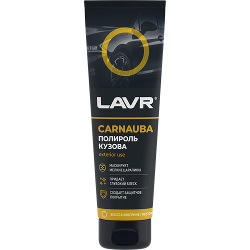 ХарактеристикиОбщиеПридает лакокрасочному покрытию кузова блеск, делает цвет более ярким и насыщенным.Образует прочную прозрачную пленку, защищающую от выгорания, агрессивного воздействия окружающей среды и дорожных реагентов.Заполняет микротрещины и маскирует мелкие царапины.Обладает выраженными водоотталкивающими свойствами и защищает кузов от коррозии.Технические характеристикиТип товара: полирольОбласть применения: кузовТип тары: пэтОписаниеПолироль кузова с карнаубским воском LAVR – специализированное средство для обработки лакокрасочных поверхностей автомобилей и мотоциклов. Улучшает внешний вид и придает дополнительные защитные свойства. Воск карнаубской пальмы обеспечивает прочную защитную пленку и глянцевый блеск, а также защищает обработанную поверхность от выгорания и воздействия дорожных загрязнителей.ПрименениеНе использовать под прямыми солнечными лучами! Применять при температуре не ниже +10°С.Перед применением тщательно встряхнуть.Вымойте и высушите поверхность кузова.Равномерно нанесите полироль на небольшой участок кузова с помощью губки или мягкой ткани.Дождитесь образования белого налета на поверхности кузова.Располируйте мягкими круговыми движениями.